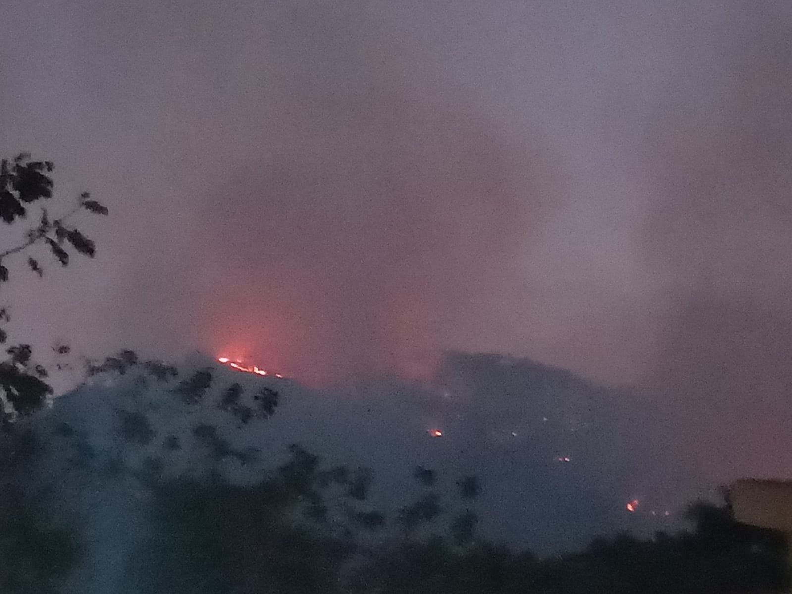 Desde la noche de este lunes se pueden observar extensas olas de fuego que se expanden, en medio del esfuerzo de los bomberos y personal del ministerio para tratar de detener el incendio que ha consumido grandes extensiones de vegetación y la falta de carretera de penetración a la parte alta de la montaña sembrada de pinos y otros árboles frutales y maderables, donde se dificulta el acceso del personal laboral.