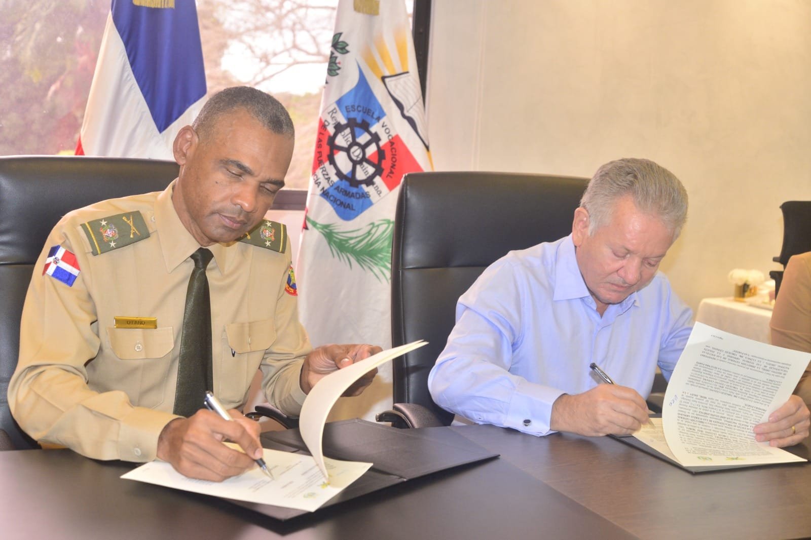 En el acto de la firma del convenio estuvieron presentes, además, el subdirector técnico de la DIGEV, Coronel de la FAD, Fernando Florián Urbaez; el subdirector Jurídico, Teniente Coronel ERD., Dionicio Pérez Valdez; y el inspector de la Escuela Vocacional de La Romana, Coronel ERD., Marino José Fermín Tejada; entre otros.