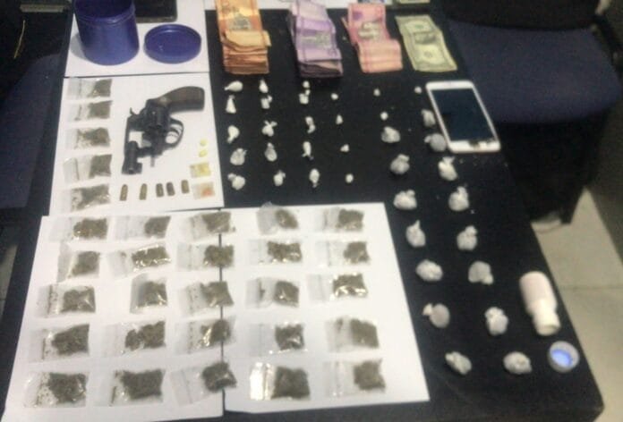 Santiago Rodríguez.- Setenta y una porciones de sustancias controladas, dos matas de presunta marihuana, un arma de fuego, dos celulares, un radio de comunicación y dinero en efectivo, fueron ocupados durante un operativo policial realizado en un punto de venta y distribución de droga desmantelado, donde uno de los traficantes resultó con herida de arma de fuego.