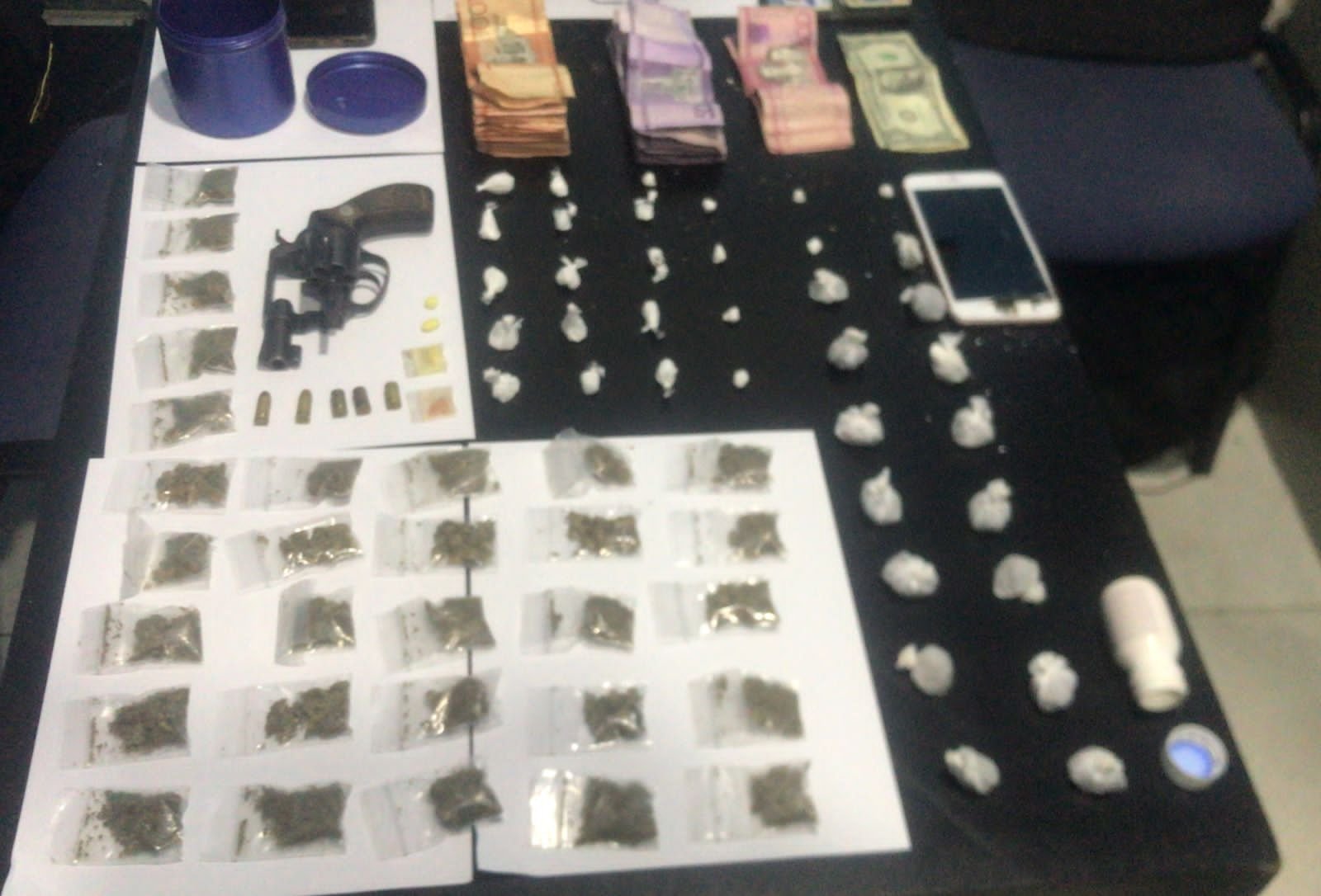 Entre las sustancias controladas confiscadas figuran 45 porciones de un vegetal verde, 14 porciones de un polvo blanco y ocho porciones de un material rocoso, que se presumen marihuana, cocaína y crack; cuatro porciones de droga sintética, presumiblemente éxtasis y la suma de cinco mil novecientos pesos en efectivo.