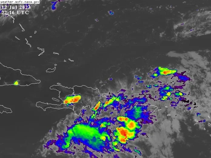 Una onda tropical ubicada sobre la porción central de país y la interacción de una vaguada en altura, favorecen la humedad e inestabilidad para que continúen generándose nublados acompañados de aguaceros que pueden ser localmente moderados a fuertes, tormentas eléctricas aisladas y ráfagas de viento, sobre las localidades de las regiones noreste, litoral costero Sur, Cordillera Central y la zona fronteriza, así como en las provincias: Monte Plata, Peravia, San Cristóbal, San José de Ocoa, Azua, El Gran Santo Domingo, Barahona, Independencia, Bahoruco, Monseñor Nouel, estos aguaceros seguirán extendiéndose a otros sectores en horas de la tarde a medida que la onda  siga desplazándose hacia el oeste.