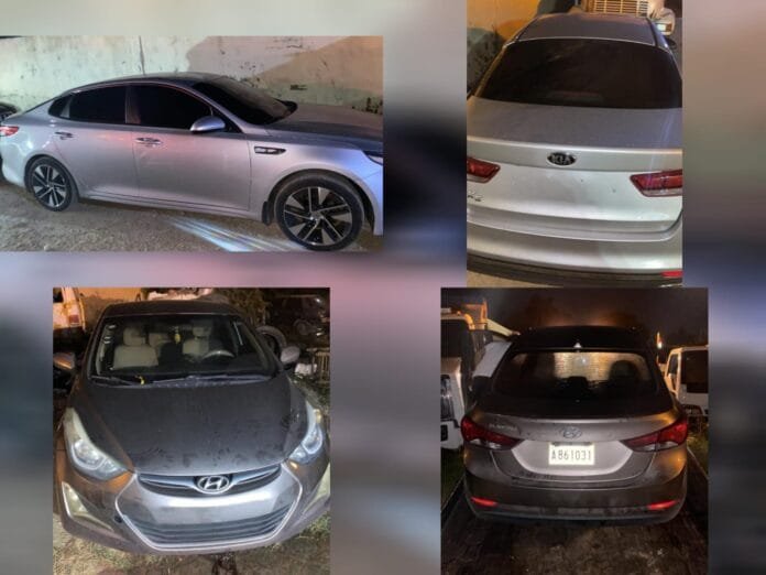 Se trata de los carros marcas Kia-k5, uno color gris y el otro blanco, placas números A994999 y A815568, los cuales fueron requisados en presencia de un representante del Ministerio Público.