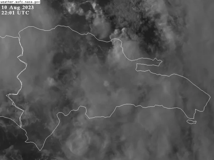 Para el día de hoy, la humedad asociada a una onda tropical ubicada sobre Haití que empieza a alejarse de nuestro territorio, continuará aportando condiciones favorables para que se presenten algunos nublados acompañados de aguaceros, tronadas y posibles ráfagas de viento durante la mañana sobre las provincias: La Altagracia, La Romana, San Pedro de Macorís, Hato Mayor, Azua, Peravia, Barahona, Pedernales.