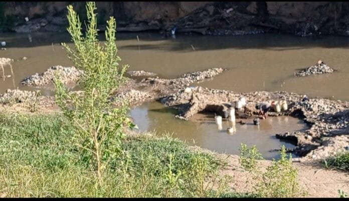 Dajabón, República Dominicana.- Grupos de haitianos provistos de cubetas, palas, sacos camiones y vigilados por civiles con armas largas, se encuentran depredando el río Masacre con la extracción de sus agregados, a corta distancia del lugar en conflicto por la construcción de un canal que desviará su curso para cultivar terrenos en Juana Mendez.