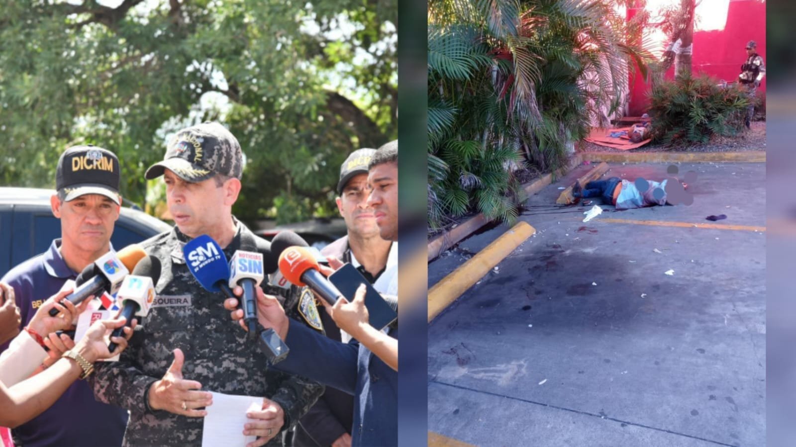Los dos vigilantes ultimados en el supermercado Olé de Villa Mella, en Santo Domingo Norte, fueron amarrados en un árbol por uno de dos delincuentes, de acuerdo a lo captado en una de las cámaras de seguridad, mientras que otro de los vigilantes fue amordazado, según informó este martes la Policía Nacional.