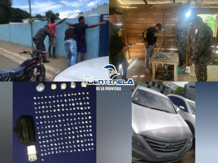 La institución del orden dijo que durante una ardua labor de inteligencia registrada en las últimas 72 horas, también confiscó más de 250 porciones de presunta cocaína, marihuana y crack, y recuperó dos carros, cinco motocicletas y seis sacos llenos plátanos robados, además de desmantelar varios puntos de venta y distribución de sustancias controladas.