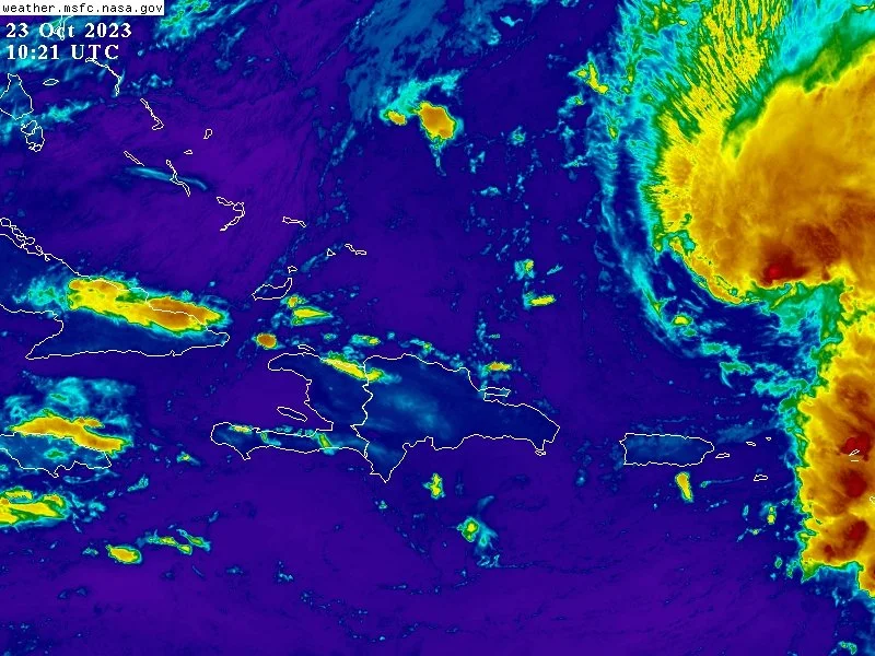 Para hoy seguirán los efectos indirectos asociados al huracán TAMMY y la interacción de una vaguada en diferentes niveles de la troposfera, favoreciendo la humedad e inestabilidad para que desde las primeras horas de la mañana se generen nublados con aguaceros fuertes localmente, tronadas y ocasionales ráfagas de viento sobre provincias de las regiones: noroeste, norte y el litoral costero Caribeño. Principalmente: Montecristi, Puerto Plata, María trinidad Sánchez, Santiago, Samaná, entre otras.