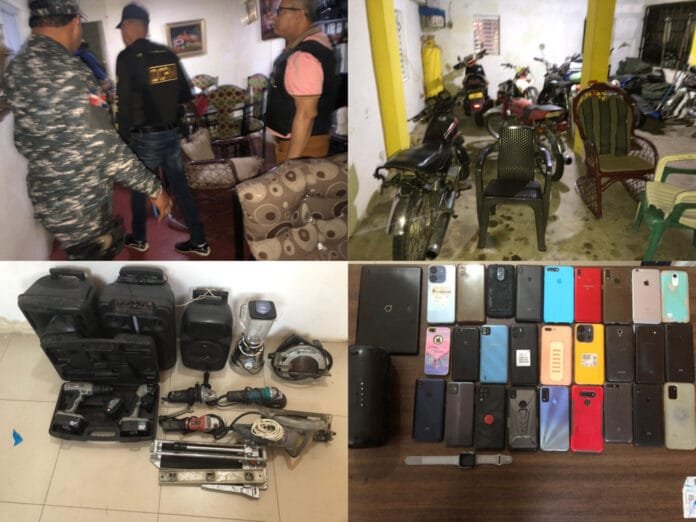 Dajabón, República Dominicana.- Miembros de la Policia Nacional y el Ministerio Público allanaron una vivienda en el municipio de Loma de Cabrera, provincia de Dajabón, donde fue apresada una persona y se ocuparon 27 teléfonos celulares, cuatro motocicletas y una pásala, presuntamente robados.