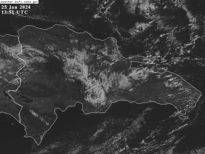 Mañana sábado, no esperamos cambios apreciables en las condiciones meteorológicas sobre el país, debido a la permanencia del sistema de alta presión, que como resultado estará limitando los acumulados de lluvias significativas, sin embargo, el viento del este, junto a los efectos locales provocarán algunos incrementos nubosos con lluvias débiles y ráfagas de viento desde la madrugada en aislados puntos de las regiones noreste, sureste y la Cordillera Central, como son: La Altagracia, El Seibo, Hato Mayor, Samaná, María Trinidad Sánchez, Monseñor Nouel, San Cristóbal, entre otras.