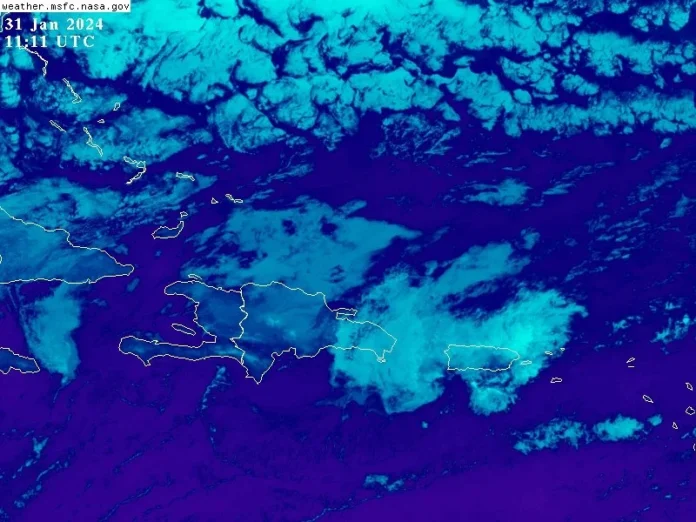 En horas de la noche, las precipitaciones estarán disminuyendo de manera gradual, pero permanecerán algunos nublados y lluvias ocasionales sobre provincias en el norte, noreste y la vertiente norte de la cordillera Central.