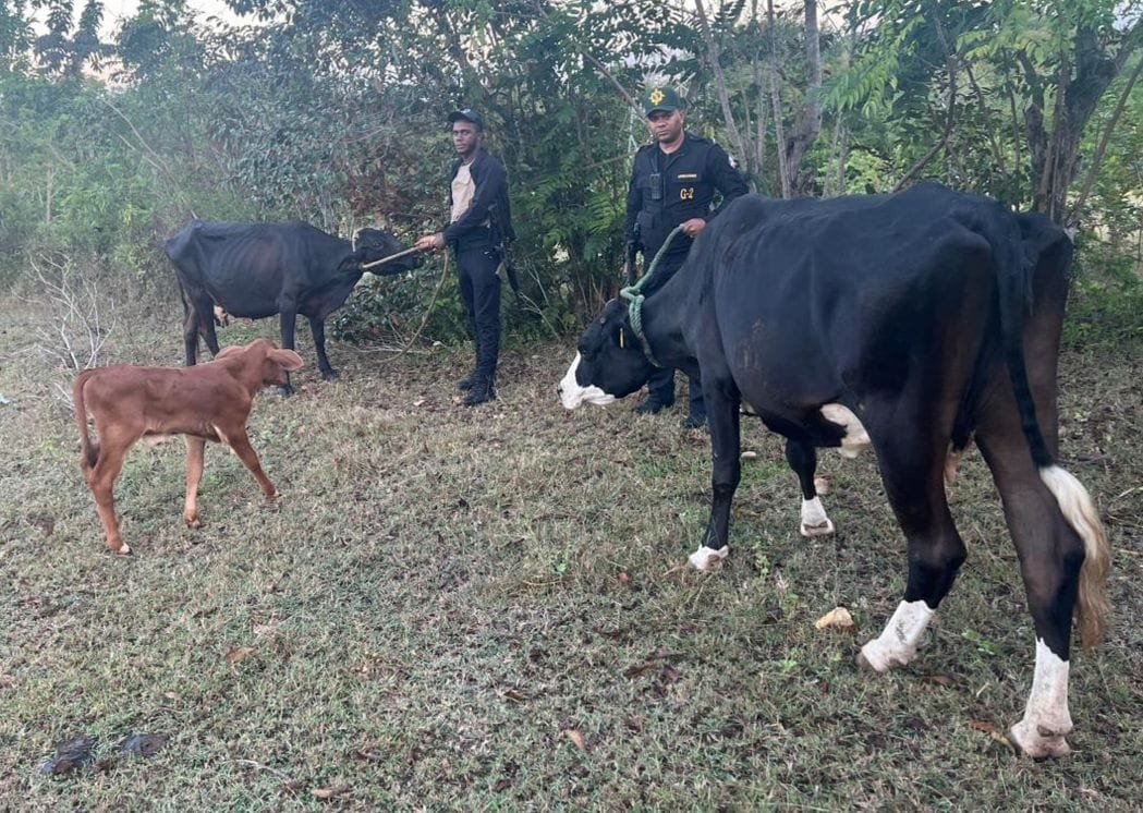Los individuos con las vacas amarradas con sogas, se dirigían hacia el Río de los dos Caños, que conecta con la comunidad de La Peñita, y al momento de ser sorprendidos por los agentes, emprendieron la huida, dejando abandonado los animales.