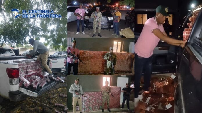 Valverde, República Dominicana.- Miembros del Servicio de Inteligencia (G-2) y uniformados del Ejército Dominicano, pertenecientes a la Cuarta Brigada de Infantería, decomisaron la cantidad de 630,000 unidades de cigarrillos, provenientes del vecino país de Haití, a bordo de una camioneta y una Jeepeta, en los municipios de Laguna Salada y Mao, de la provincia Valverde.