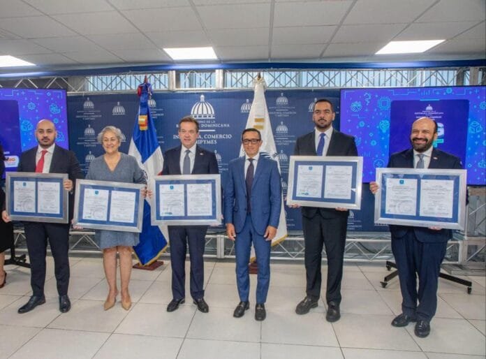 La entrega de certificaciones se llevó a cabo en la sede del MICM por Ricardo Jiménez, gerente Comercial Internacional del Instituto Colombiano de Normas Técnicas y Certificación (ICONTEC), entre otros.