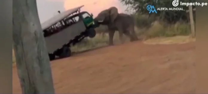 Tal es el caso de un camión de turistas que fue atacado por un elefante en el Parque Nacional de Pilanesberg, en Sudáfrica, donde, durante casi un minuto sufrieron pánico al casi voltearse el vehículo donde recorrían el lugar.