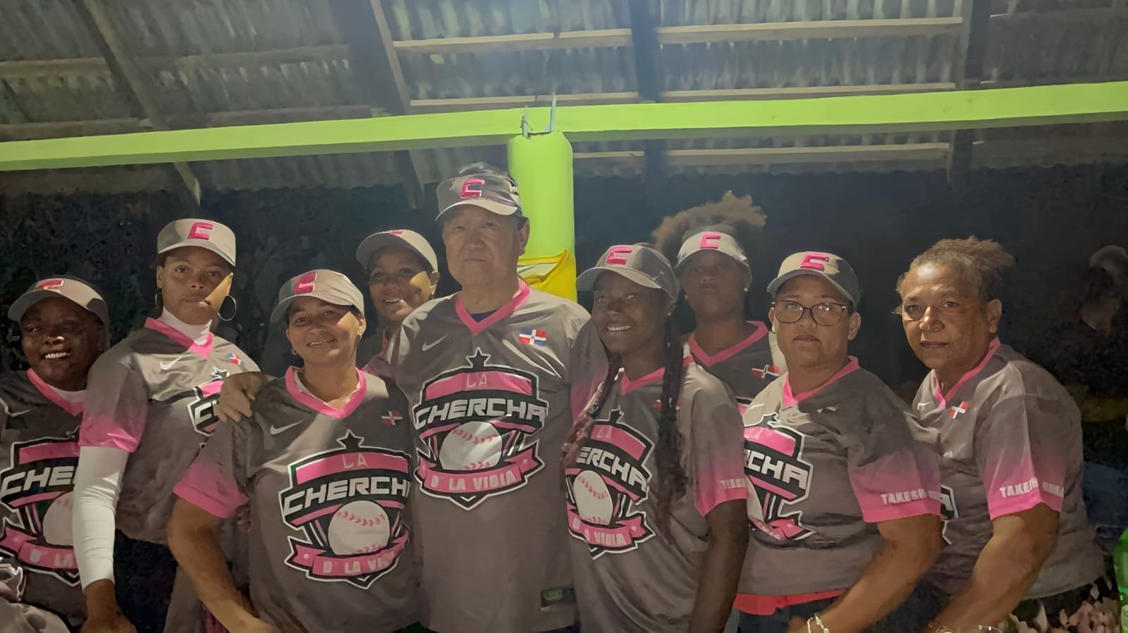 Dajabón, RD.- El sub Coordinador provincial Takeshi Mukai realizó la entrega de útiles deportivos a dos equipos de sóftbol femeninos y masculinos, con la finalidad de continuar contribuyendo al deporte y mantener las comunidades dinamizadas, con cuerpo y mente sanas, Mukai entregó al equipo Femenino la Chercha un uniforme que le habían solicitado, así como a los Veteranos equipo Masculino un bate, algunos bolas y dinero en efectivo.
