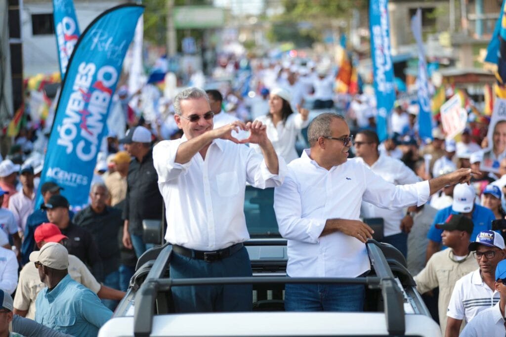Abinader junto a la gran multitud partieron en la avenida Sánchez del municipio de Sabaneta de la mencionada provincia donde miles de perremeistas realizaban señas de cuatro años más para el candidato presidencial y el aspirante a senador por la provincia noroestana.