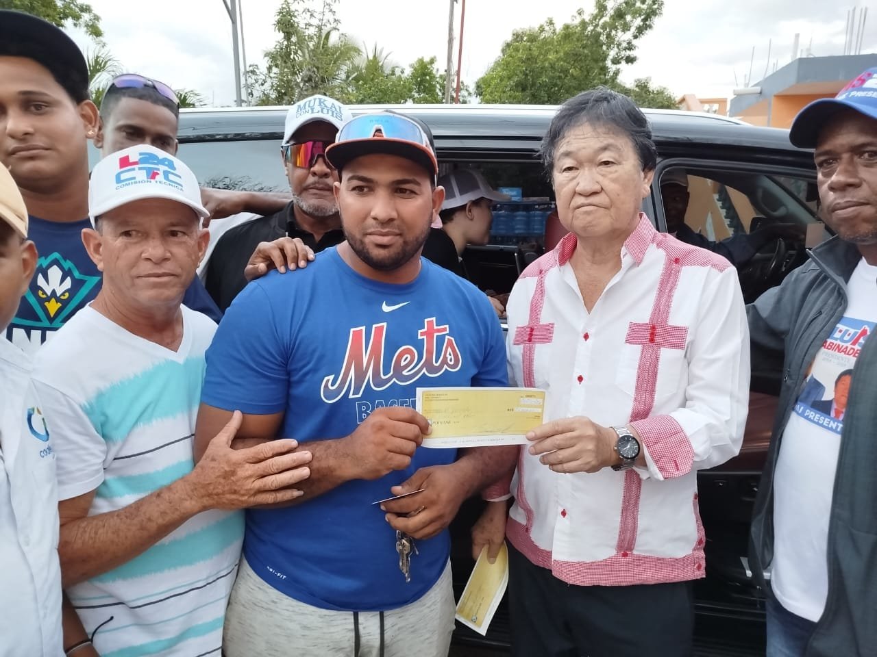 CAÑONGO.- El subcoordinador adjunto de campaña del Partido Revolucionario Moderno (PRM) Takeshi Mukai, entregó un aporte económico a deportistas de este Distrito Municipal de Dajabón.