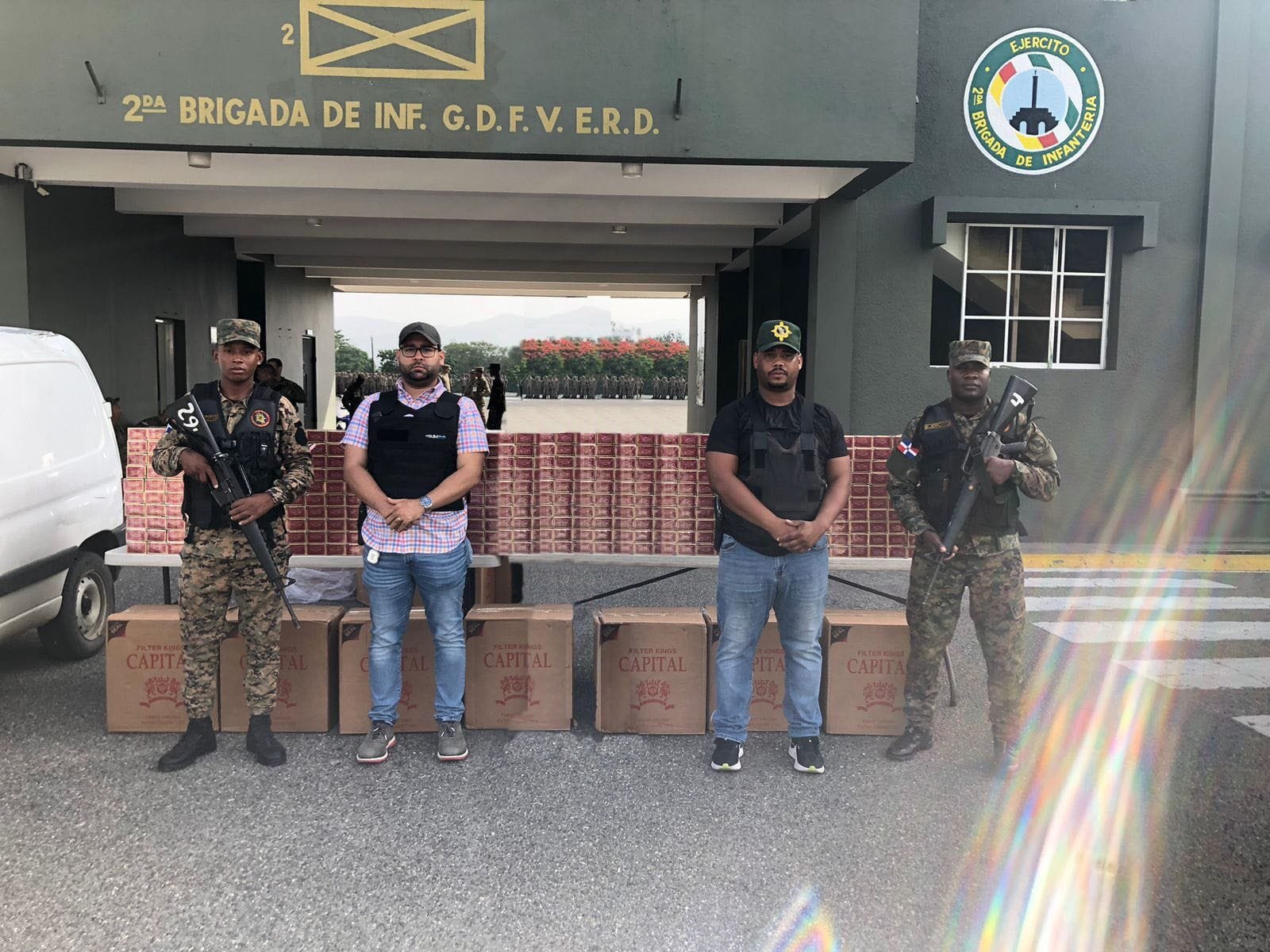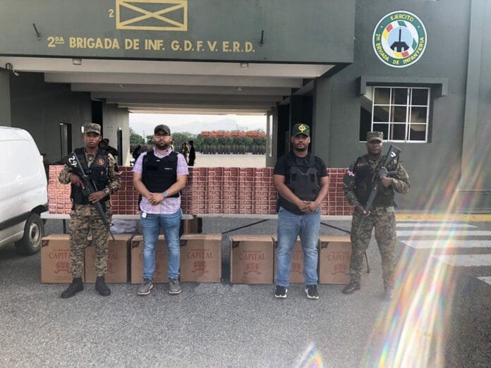 Santiago.- Miembros de la dirección nacional de inteligencia (G-2) y uniformados de la segunda brigada de infantería del ejército Dominicano, acompañados del ministerio público, ocuparon un contrabando de 170 mil unidades de cigarrillos de procedencia extranjera y detuvieron al propietario quien lo tenía oculto en una marquesina de esta ciudad.