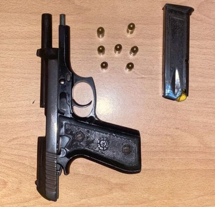En poder del occiso se ocupó la pistola marca Tauro, calibre 9mm, utilizada para atacar a los agentes, entre otros elementos.