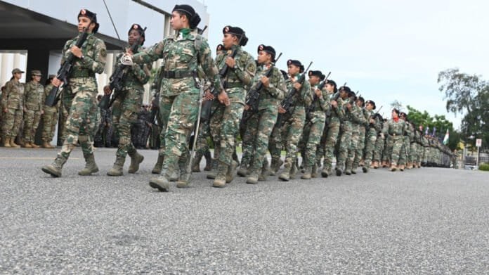 Santo Domingo.- El Ministerio de Defensa (MIDE) reconoció el creciente liderazgo y la cuota de participación de un 22 % de mujeres militares en las filas de sus instituciones, lo que se puso de manifiesto este lunes, durante una concurrida izada de bandera, en la que participaron damas que integran las tres fuerzas militares, cuerpos especializados, dependencias del Ministerio de Defensa y de la Policía Nacional.