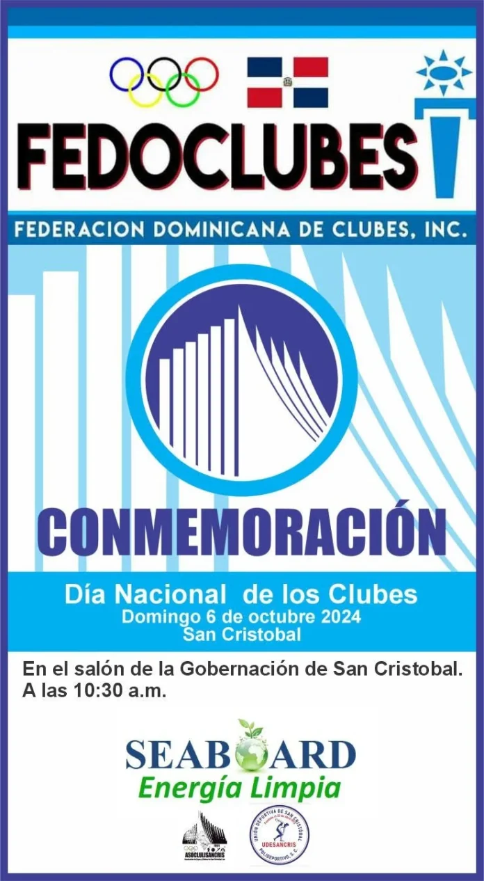 Con un encuentro con los clubes de la Región Sur y el Gran Santo Domingo, será conmemorado «El Día Nacional de los Clubes», en un acto solemne a celebrarse en el Salón de la Gobernación de la ciudad de San Cristobal, Cuna de la Constitución de la República.