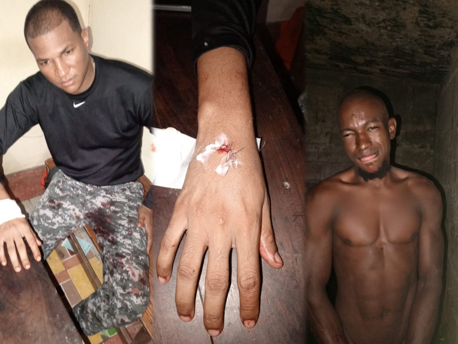Tras no obedecer al llamado, procedieron a someterlo a la obediencia, provocándose un forcejeo encima del zinc, resultó herido el Capitán de la Policía Carlos Manuel Pinales Hernández, supervisor zonal de Loma de Cabrera, con una cortadura en la mano derecha.