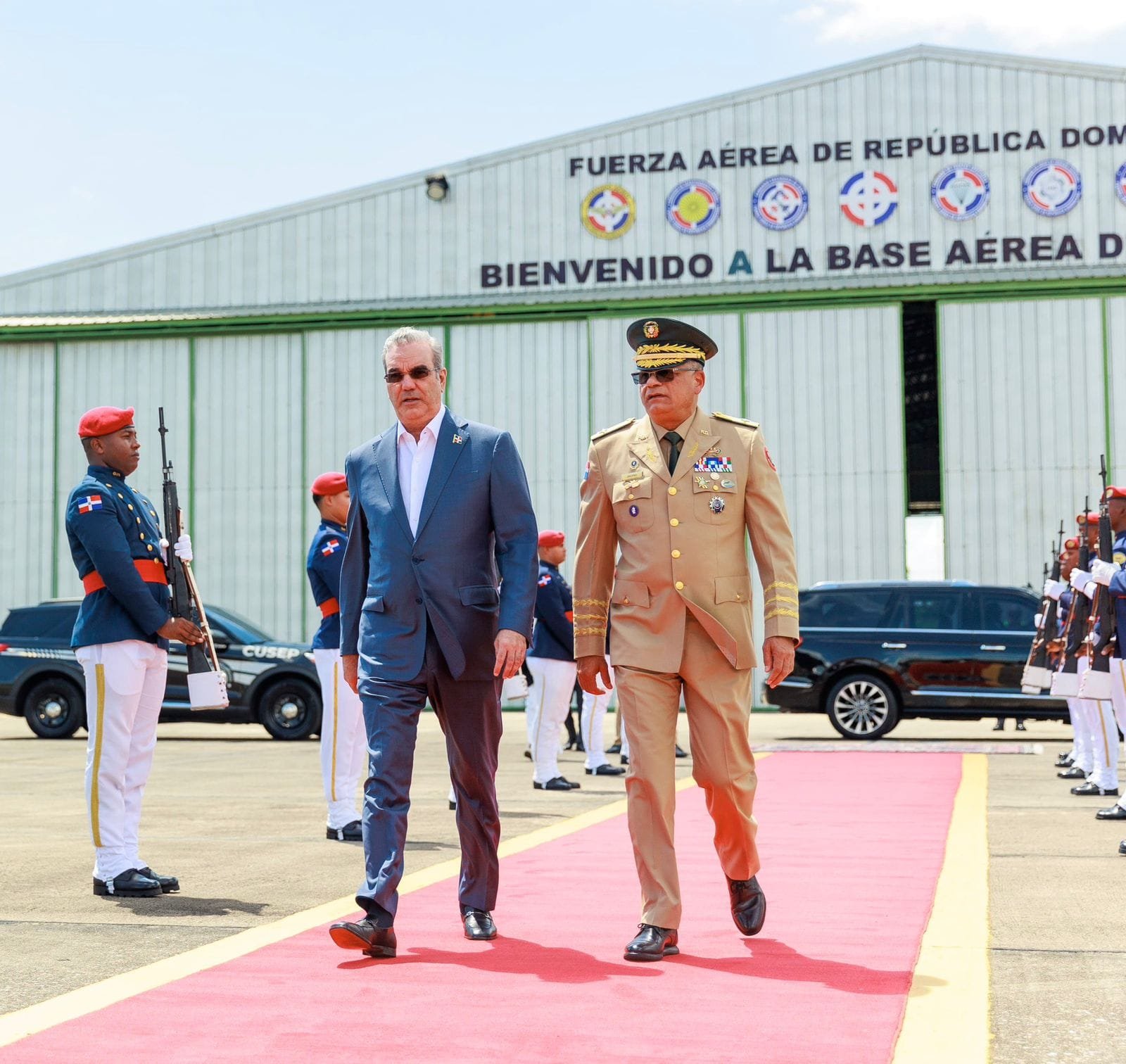 El mandatario salió a la 1:37 desde la Base Área de San Isidro, donde fue despedido por el ministro de Defensa, mayor general, Carlos Antonio Fernández Onofre; el comandante general de la Fuerza Aérea, mayor general piloto, Floreal Suárez y de la Guardia Presidencial, general Guillermo Caro Cruz.