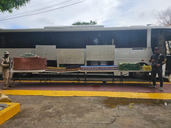 El autobús fue conducido a la Base de Operaciones Fronterizas Batalla Sabana Larga y ahí se realizó la requisa encontrando 47,500 unidades de cigarrillos de diferentes marcas.