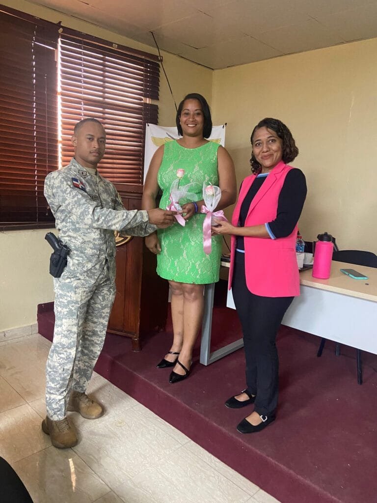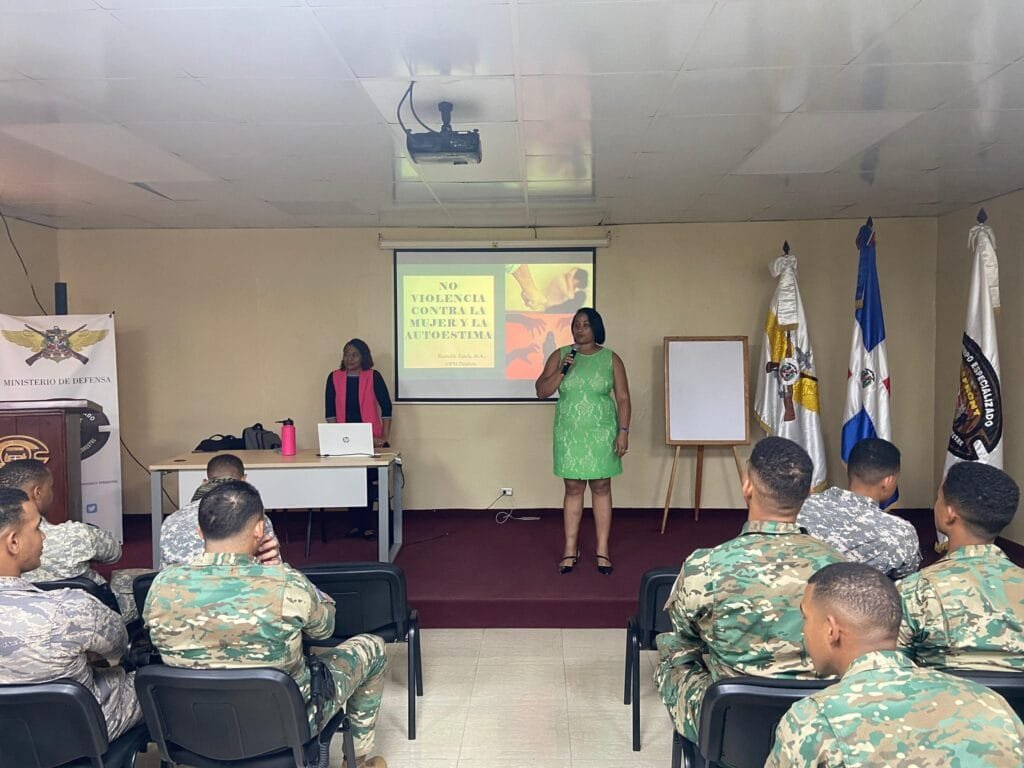 Loma de Cabrera.- Miembros del Cuerpo Especializado de Seguridad Fronteriza Terrestre (CESFronT) asignados a la Escuela de Capacitación Fronteriza Terrestre (ESCAFRONT) recibieron la charla «La no Violencia Contra la Mujer y la Autoestima», impartida por representantes del Ministerio de la Mujer.