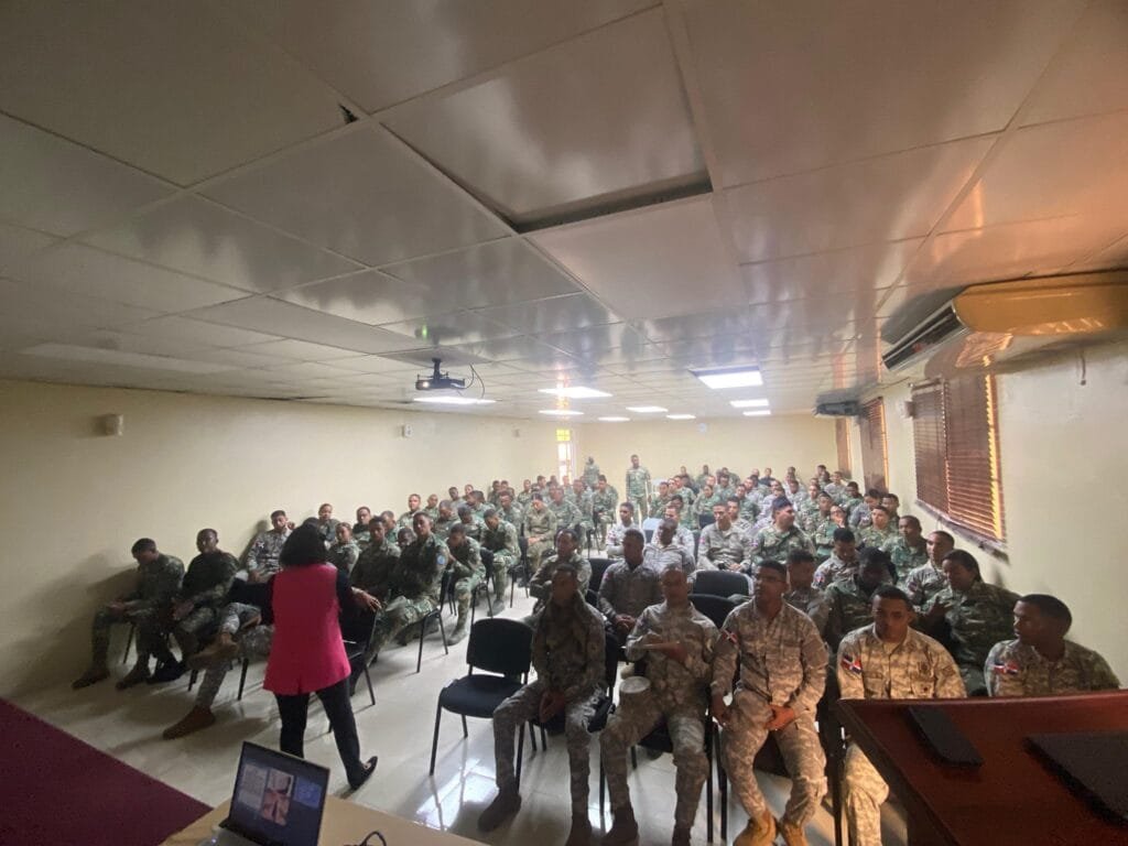 Loma de Cabrera.- Miembros del Cuerpo Especializado de Seguridad Fronteriza Terrestre (CESFronT) asignados a la Escuela de Capacitación Fronteriza Terrestre (ESCAFRONT) recibieron la charla «La no Violencia Contra la Mujer y la Autoestima», impartida por representantes del Ministerio de la Mujer.