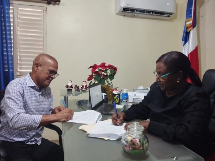 La firma del acuerdo tuvo lugar en las instalaciones de la Dirección Provincial de Salud y fue encabezada por la Dra. Zaberkis Rodríguez Pérez, representante de la DPS-D, y el Ing. Ramón Ignacio Díaz (Yonny), en representación del Ministerio de Agricultura.