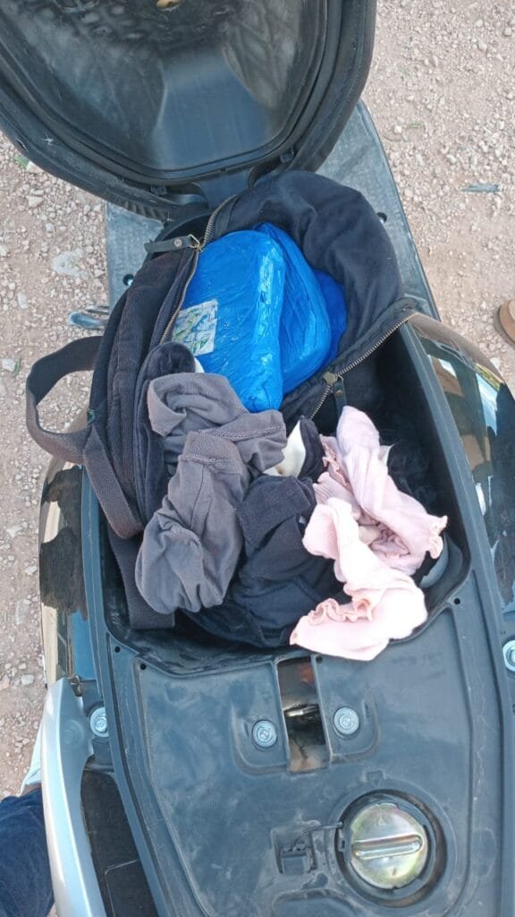 Ambas jóvenes, quienes no portaban documentos, transitaban en una passola marca Honda Lee color negro, sin placa, la cual al ser requisada se encontraron en el compartimiento interior de la misma, los tres paquetes del vegetal ocultos en un bulto negro.