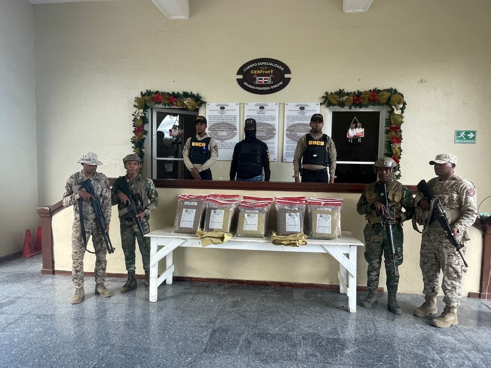 Elías Piña.- El Cuerpo Especializado de Seguridad Fronteriza Terrestre (CESFRONT) en conjunto con la Dirección Nacional de Control de Drogas (DNCD) y el Ejército de República Dominicana, incautaron 200 libras de un vegetal que se presume es marihuana en Elías Piña.