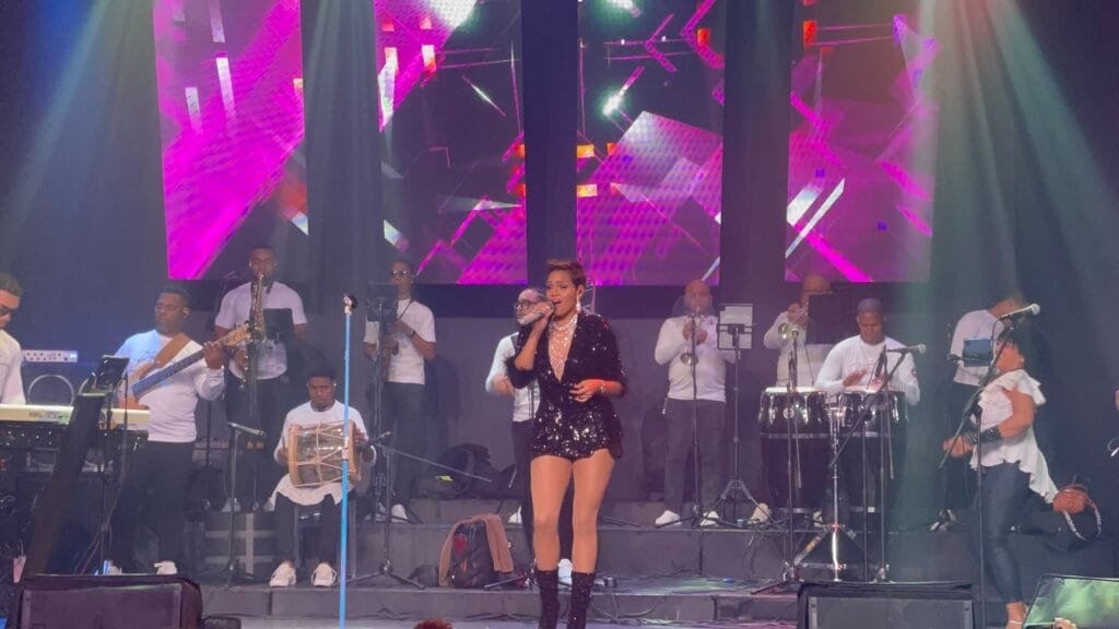 La noche comenzó con la energía vibrante de Didi Hernández, quien encendió el escenario con su carisma y sus pegajosos ritmos de merengue. Con una interpretación llena de pasión y alegría, logró conectar de inmediato con el público, convirtiendo la pista de baile en una fiesta llena de movimiento y emociones.