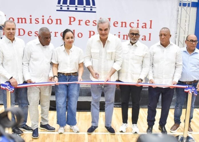 El presidente Luis Abinader, junto al Director de Desarrollo Provincial, Angel de la Cruz Hernández, entregaron este sábado totalmente remozado el complejo deportivo y Cultural Renacer en el Distrito Nacional.