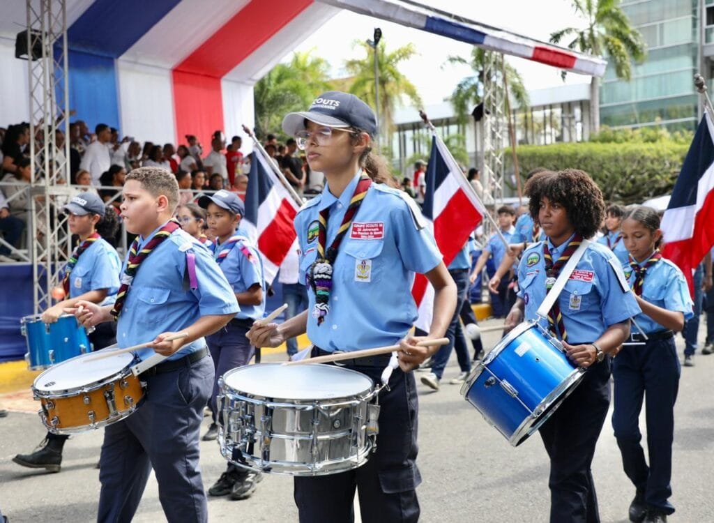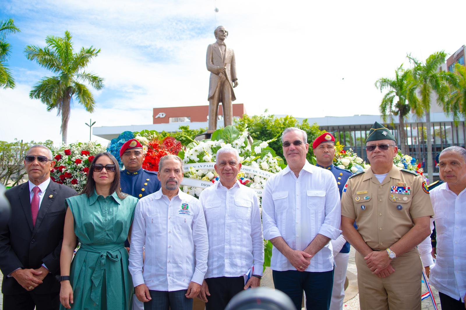 Al finalizar el desfile, el Presidente Abinader depositó una ofrenda floral en la estatua de Juan Pablo Duarte, en el parque que lleva su nombre.
