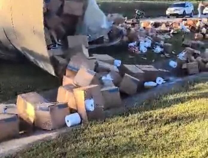Un accidente de tránsito ocurrido este lunes en la Autovía del Coral, en el tramo entre La Romana e Higüey, dejó dos personas muertas y una gravemente herida. El choque involucró a tres vehículos: un automóvil, una camioneta del Ministerio de Obras Públicas y un camión cargado con productos comestibles y bebidas alcohólicas, que terminó volcado tras el impacto, bloqueando completamente la vía.