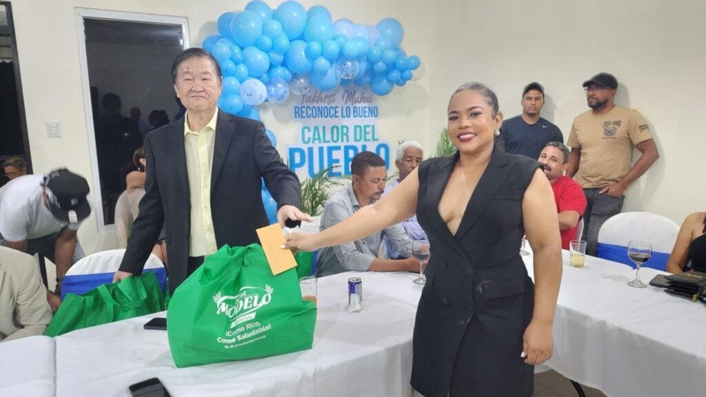Durante la actividad que fue conducida por la comunicadora Claudia Caraballo, Mukai entregó, placas, computadoras Laptop y dinero en efectivo.