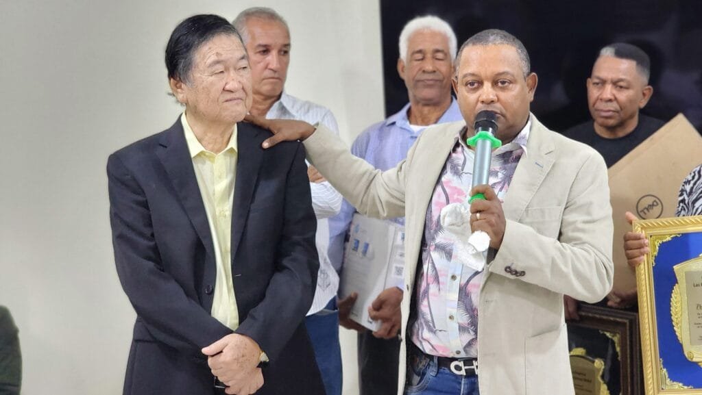 Dajabón.- El empresario filántropo Takeshi Mukai, reconoció a los integrantes del Staff de locutores del programa Calor del pueblo, que produce y conduce el comunicador Social Juan de Dios Liberato en esta ciudad.