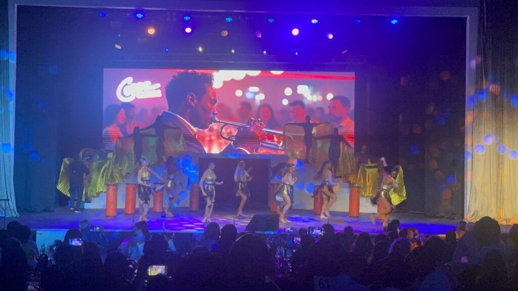 El cuerpo de bailarinas encabezado por Deysi Fresco brilló con coreografías de la reconocida profesora Josefina Miniño y la experimentada Dilia Mieses, evocando con elegancia el espíritu de los grandes espectáculos nocturnos de antaño.