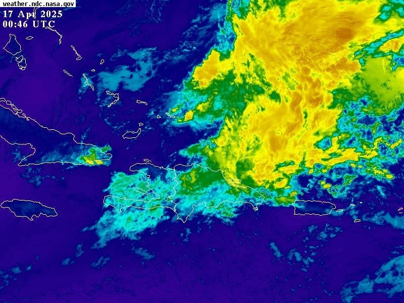 Durante las horas matutinas observaremos un cielo de nubes dispersas y escasas precipitaciones. Sin embargo, en horas de la tarde nuevamente se están presentando incrementos nubosos generadores de aguaceros localmente moderados a fuertes, acompañados de tormentas eléctricas y ráfagas de viento sobre las provincias: Independencia, Baoruco, Elías Piña, Dajabón, San Juan, Santiago Rodríguez, Valverde, Santiago, Hermanas Mirabal, María Trinidad Sánchez, La Vega, Monseñor Nouel, San Cristóbal, San José de Ocoa, Sánchez Ramírez, Duarte, Samaná, Hato Mayor, Monte Plata y El Seibo, producto de la vaguada en diferentes niveles y los efectos del viento del este/sureste.
