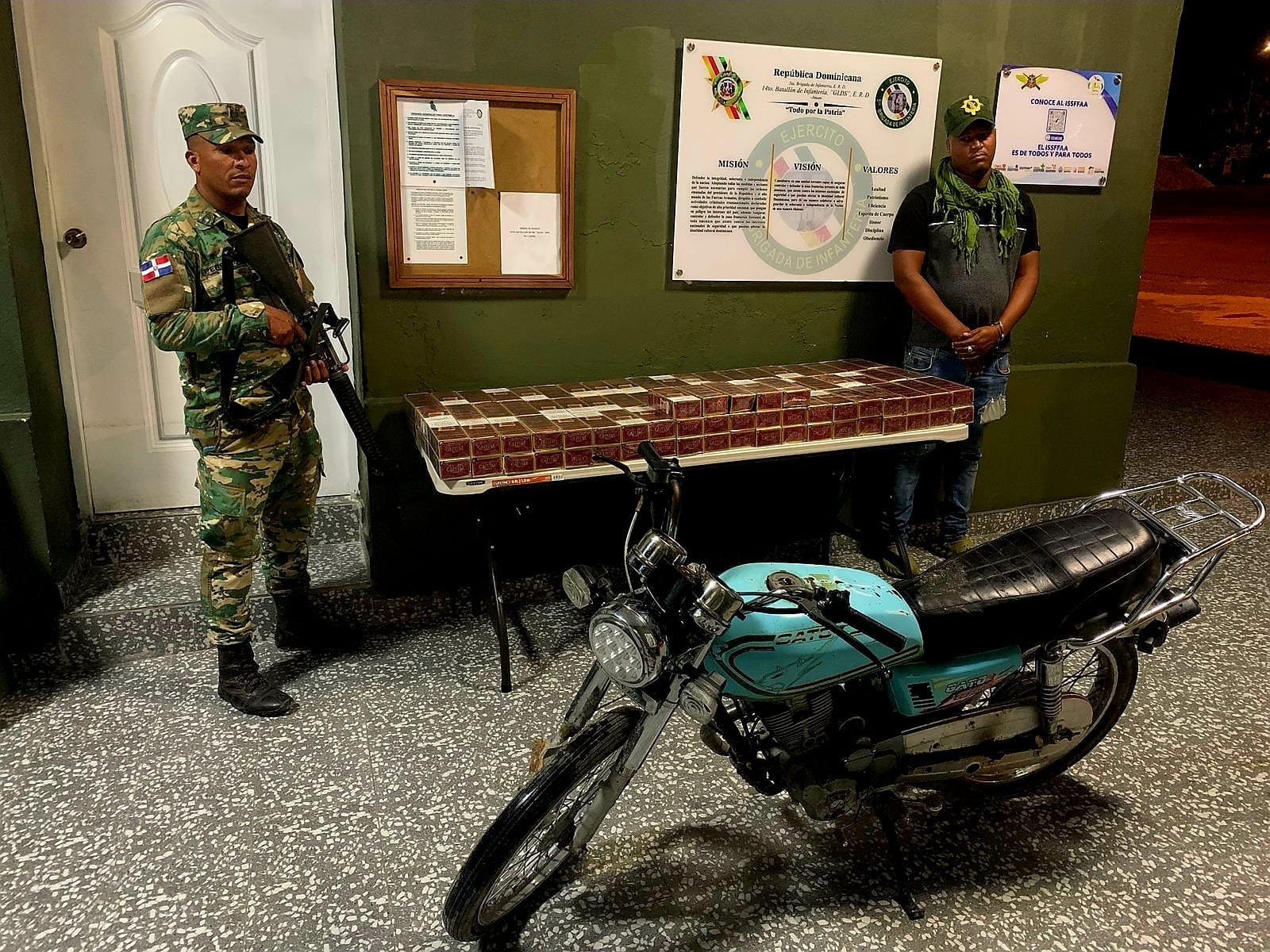Bahoruco.- Un motociclista que se desplazaba por un atajo con salida a una de las avenidas de la comunidad Boca de Cachón, en Jimaní, abandonó el vehículo en el que transitaba con una carga de 13 mil unidades de cigarrillos de procedencia ilegal marca Capital.