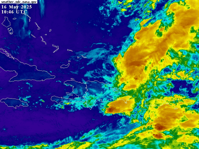 La vaguada en varios niveles de la troposfera, seguirá dominando las condiciones atmosféricas del territorio dominicano, generando un ambiente muy húmedo e inestable, para que desde tempranas horas y durante el transcurso de la mañana se presenten nublados con aguaceros dispersos a moderados y tronadas, principalmente en poblados de: La Altagracia, Hato Mayor, María Trinidad Sánchez, Samaná, Monte Plata, El Gran Santo Domingo, San Cristóbal, Peravia, Sánchez Ramírez, Monseñor Noel, Barahona e Independencia, entre otras cercanas.