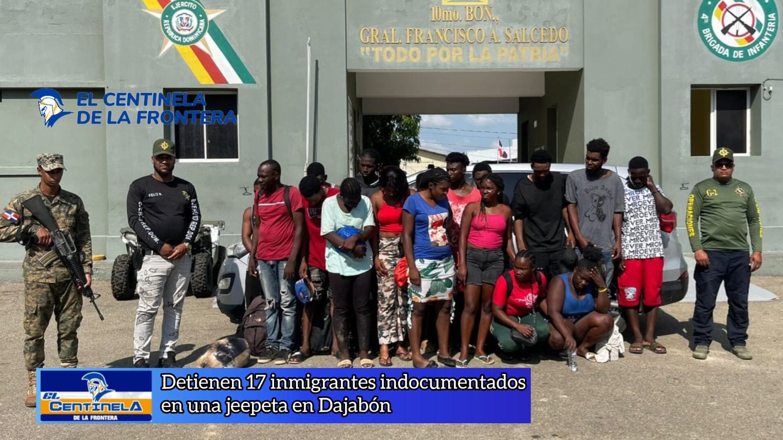 Dajabón.- Durante un patrullaje realizado en Dajabón, miembros del Ejército de República Dominicana detuvieron una jeepeta con 17 haitianos en condición migratoria irregular en el sector Loma de Chacuey.