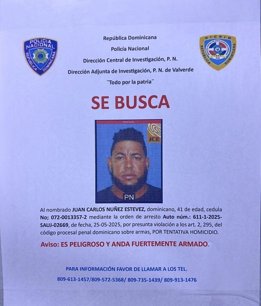 Según el informe policial, Núñez Estévez tenía en su contra la orden de arresto No. 611-1-2025-SAUJ-02669, dictada el pasado 25 de mayo por la magistrada Javierca Antonia Gómez, jueza del Distrito Judicial de Montecristi, a solicitud de la fiscal Yelissa Cabrera Caba, por presunta violación a los artículos 2 y 295-2 del Código Penal Dominicano, en perjuicio de los señores Ruperto Rosario, Willian Alexander Pérez y/o Brayan Rosario.