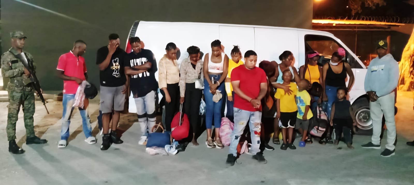 El vehículo, tipo minivan sin ventanas, marca Chevrolet, color blanco, placa I063819, fue interceptado en el sector el Junquito, por una patrulla del ERD, encontrando en su interior a 14 extranjeros en condición migratoria irregular.