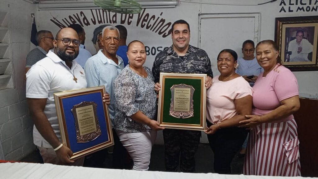 Mao, Valverde.– En un acto cargado de gratitud y sentido comunitario, la Junta de Vecinos Alicia Almonte, del sector Don Bosco, reconoció al director regional Noroeste de la Policía Nacional, General Juan Sebastián Guzmán Toribio, y al comandante del Departamento de Mao, Teniente Coronel Oliver de la Cruz, por su destacada labor en favor de la seguridad ciudadana.