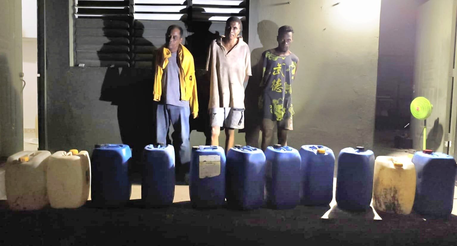Los soldados actuantes le ocuparon a los detenidos los garrafones de la bebida alcohólica adulterada, equivalentes a 55 galones de clerén.