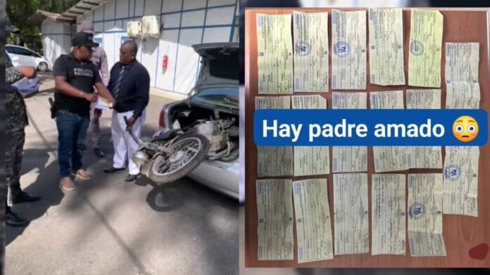 Santiago de los Caballeros.– La Policía Nacional, a través de agentes de la División de Investigación de Vehículos, adscritos a la Dirección Regional Cibao Central, apresó a un hombre al que le fueron ocupadas dos motocicletas y 17 matrículas presumiblemente falsas, durante una labor de inteligencia desarrollada en esta ciudad.