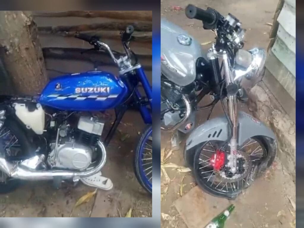 Al momento del choque, los jóvenes se desplazaban presuntamente a alta velocidad en una motocicleta marca Suzuki AX100, de color azul y otra marca CG Tauro Turbo, de color gris mate.